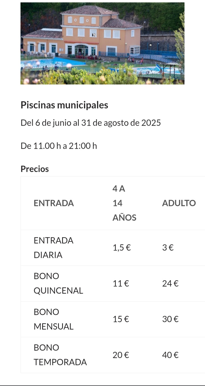 💰 TARIFAS PISCINAS